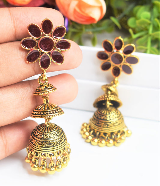 Vainika Kashmiri Brass Dejhoor Ghungroo Jhumka Earrings - Maroon