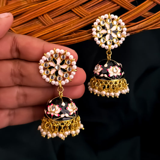 Shivanya Meenakari Jhumka Earrings - Black