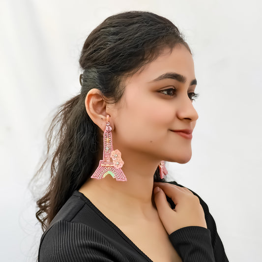 Flaunt Eiffel Tower Hand Embroidered Earrings