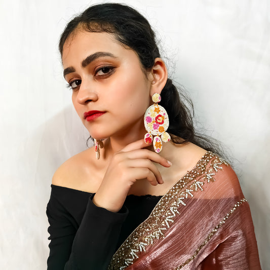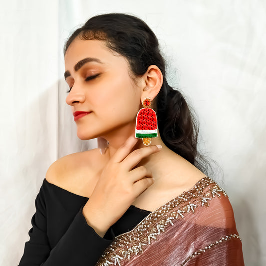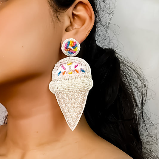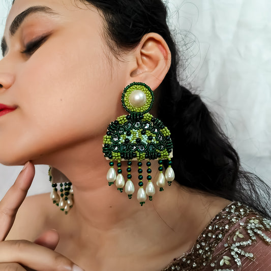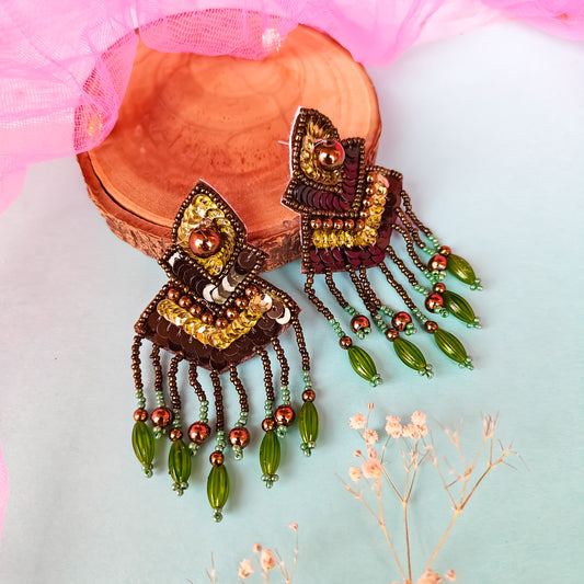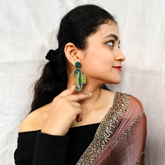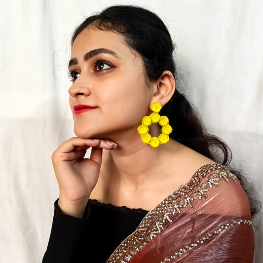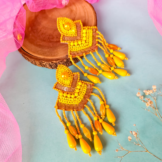 Cute Cactus Hand Embroidered Earrings - Black & Yellow