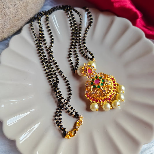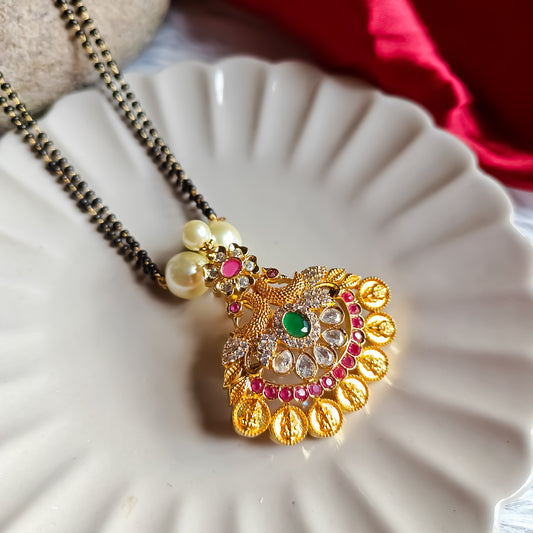 Peacock AD Mangalsutra with Green & Emerald Stones