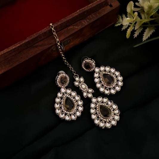 Mandana Kundan Chandbali Earrings - Mehendi Green