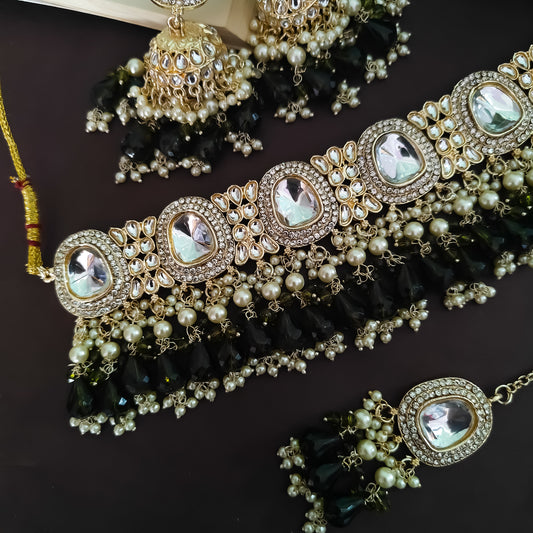 Israt Kundan Necklace Set - Mehendi Green