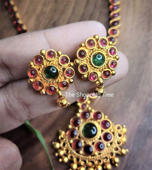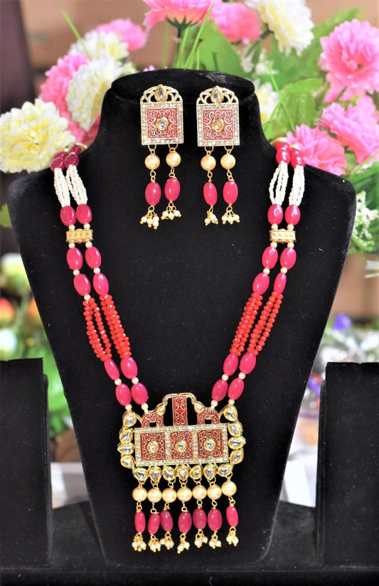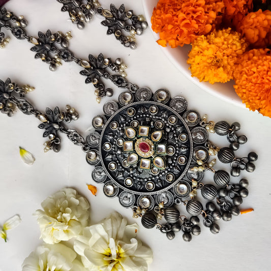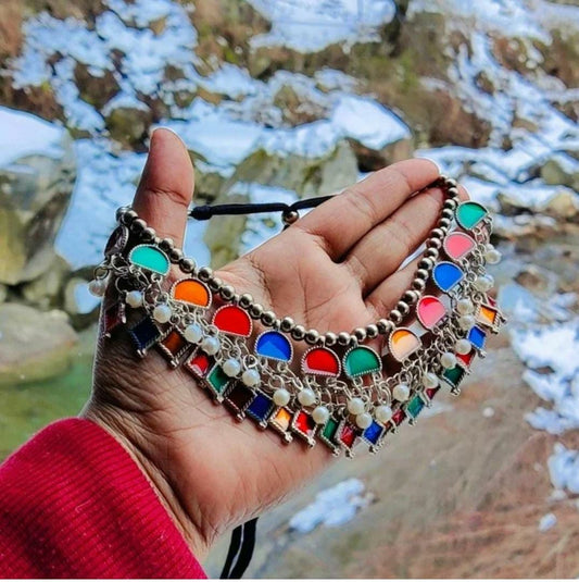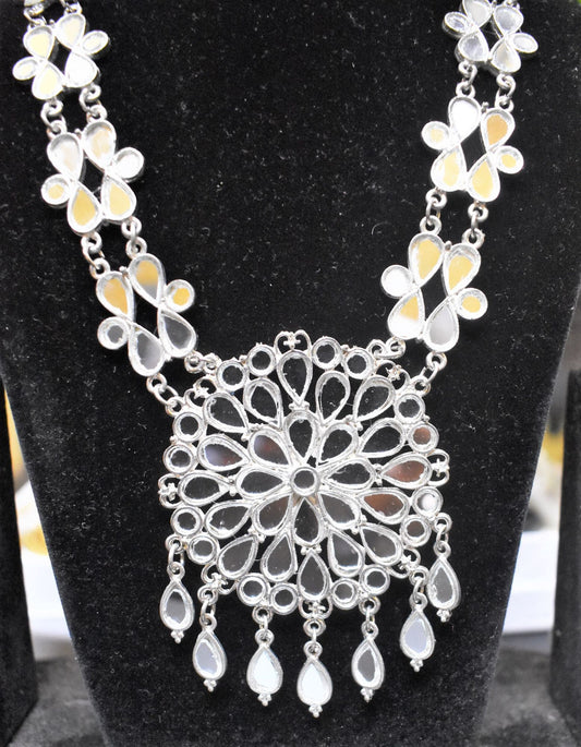 Hand Cut Glass Mirror Oxidised Necklace Set