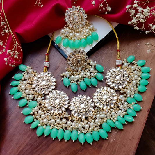 Arshi Kundan Pearl Necklace Set - Mint Green