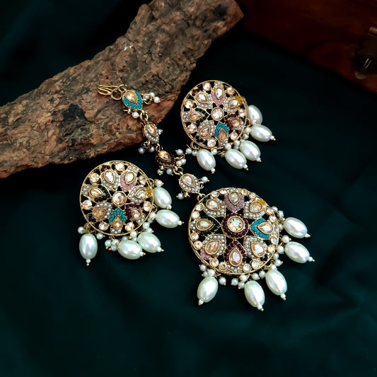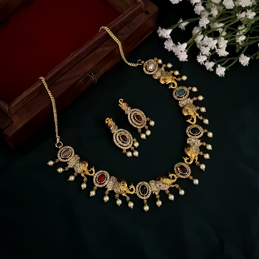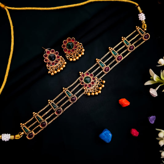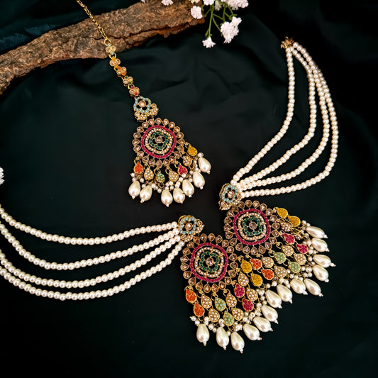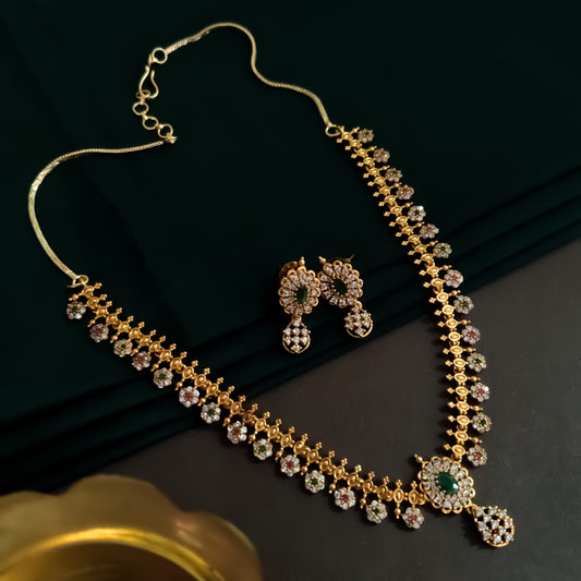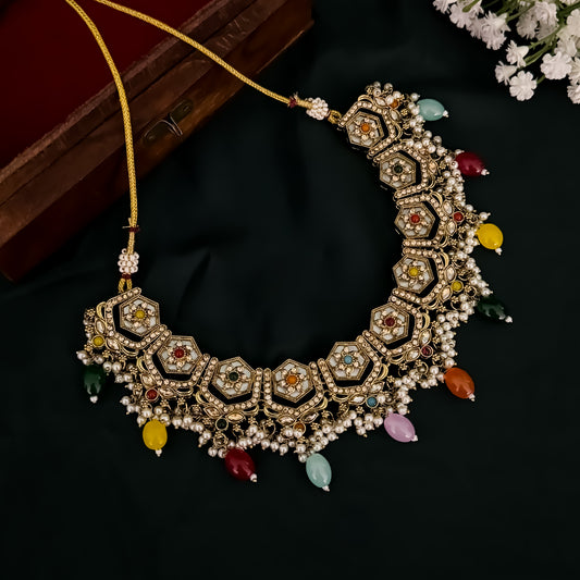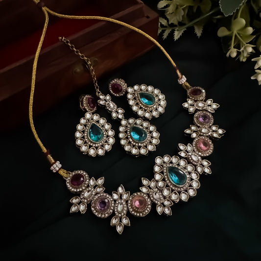 Riwaz Jadau Reverse AD Necklace Set - Multi