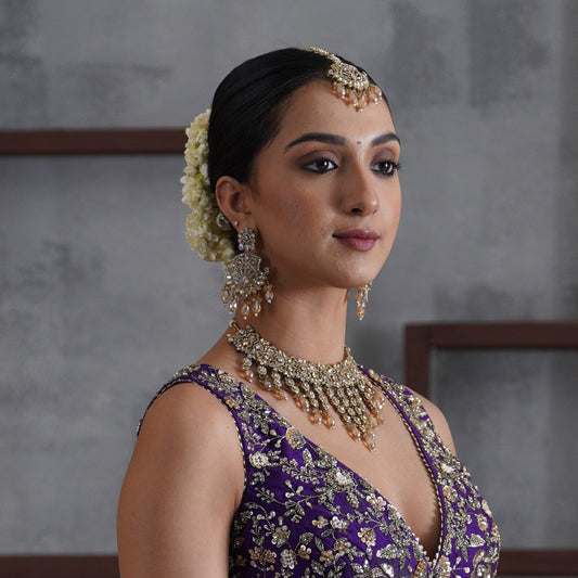 Arshiya Jadau Reverse AD Necklace Set - Golden
