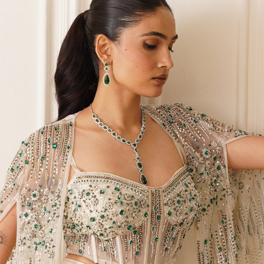 Virangana Kemp Stone Pendant Set - Pink & Green