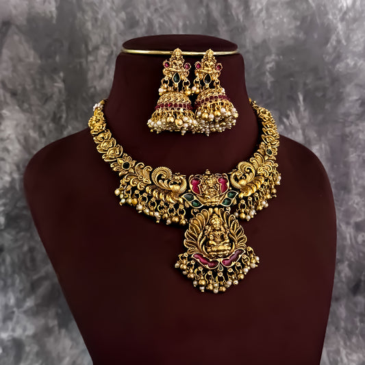 Bhavika Lakshmi Temple Necklace Set - Golden