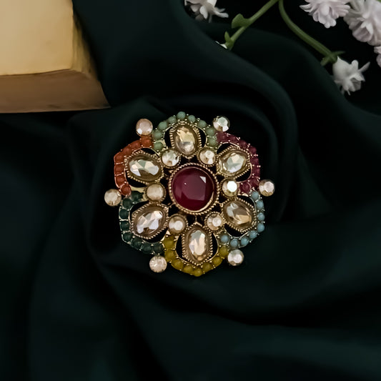 Aaradhya Jadau Adjustable Ring- Multi