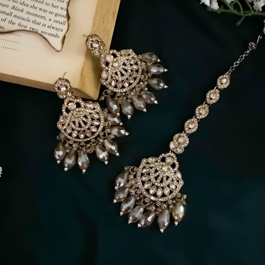Lisha Jadau (Reverse AD) Earrings & Mangtika Set - Multi