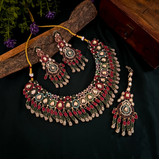 Saisha Royal Jadau Necklace Set - Multi