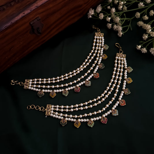 Ishana Jadau Baahubali 4 Layer Detachable Earchains - Multi