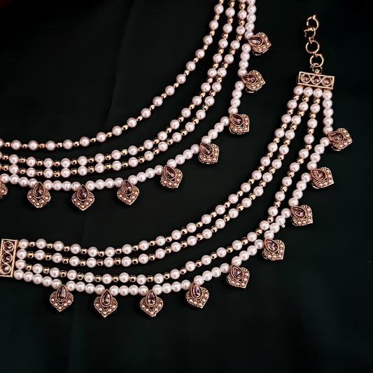 Rehan Jadau Reverse AD Necklace Set - Pink