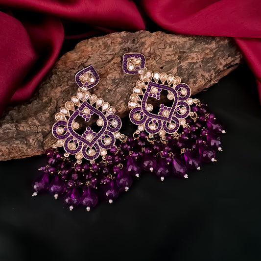 Manpreet Jadau Kundan Chandbali Earrings - Purple