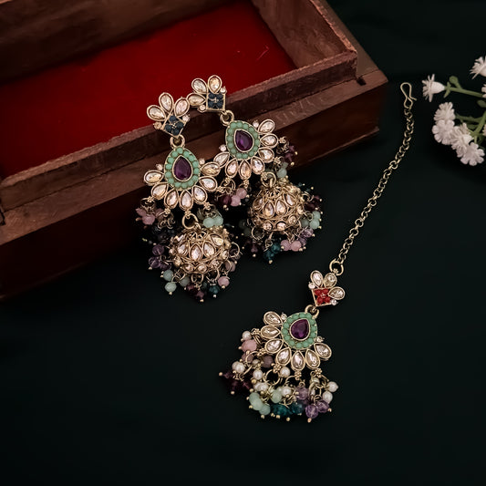 Varuna Jadau Reverse AD Jhumka & Teeka Set - Multi