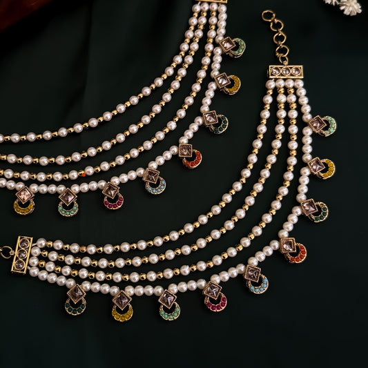 Nausheen Jadau Baahubali 4 Layer Detachable Earchains - Multi