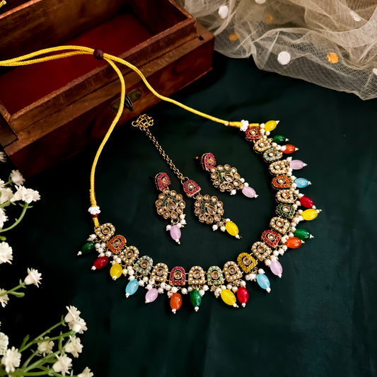 Haniya Jadau Reverse AD Necklace Set - Multi
