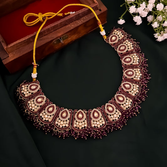Sahana Jadau Preminum Reverse AD Gantnan Necklace Set with Teeka & Pasha - Wine