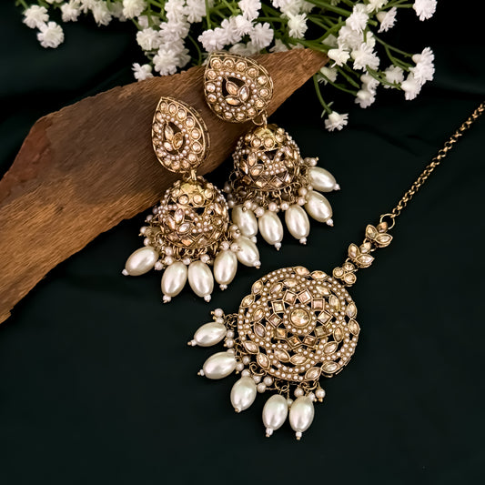 Sahana Jadau Preminum Reverse AD Gantnan Necklace Set with Teeka & Pasha - Baby Pink