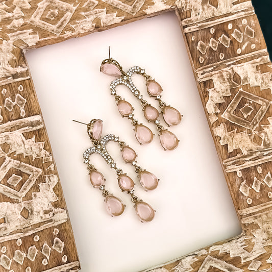Sharon Chandelier Dangler Chandbali Earrings - Baby Pink