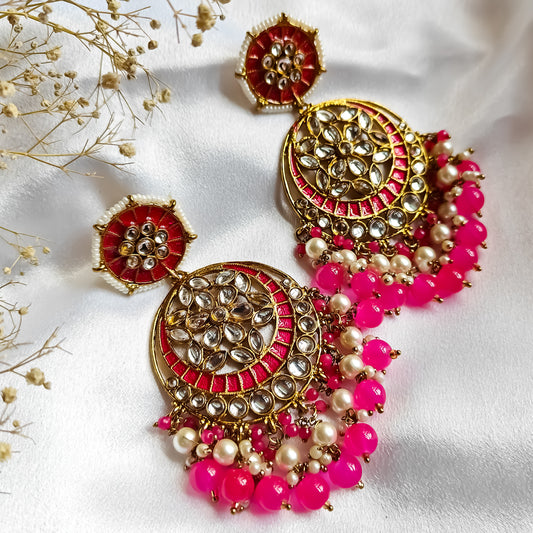 Mihika Kundan Chandbali Earrings - Hot Pink