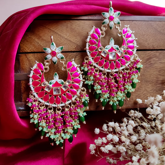 Siya Meenakari Chandbali Earrings- Hot Pink