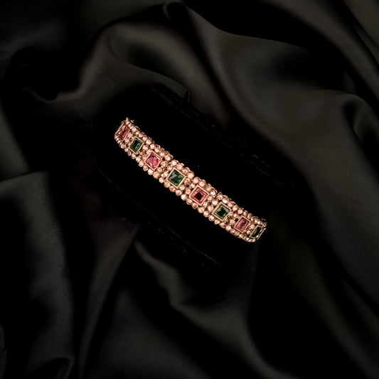 Manvika Kundan Openable Bangle/Kada - Pink & Green