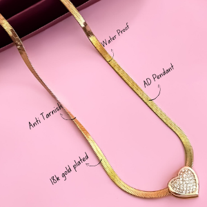 Luna 18K Gold Plated AntiTarnish Snake Chain with Heart Golden AD Pendant