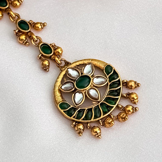 Sharanya Kundan Pearl Maang Teeka - Golden