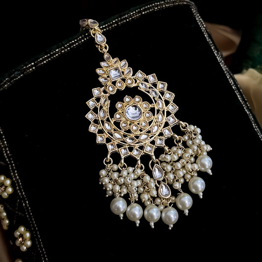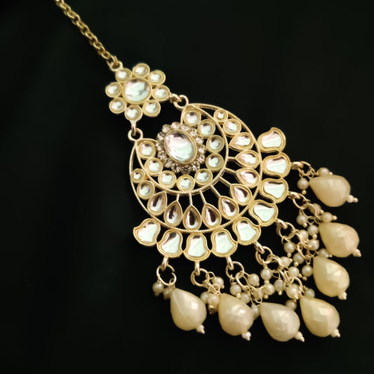 Kumudini Kundan Pearl Maang Teeka - Golden