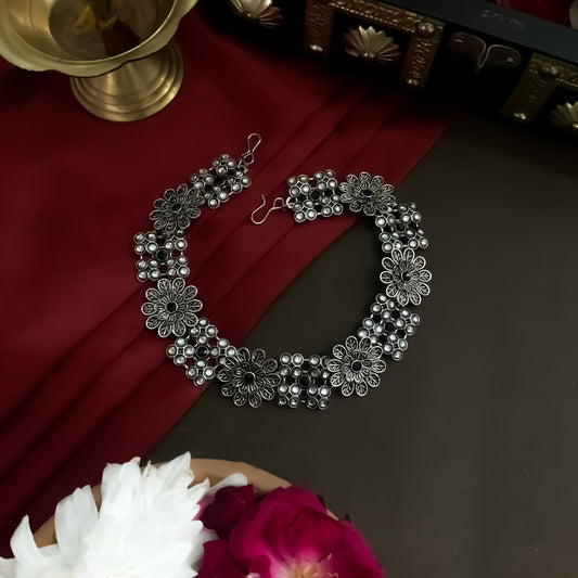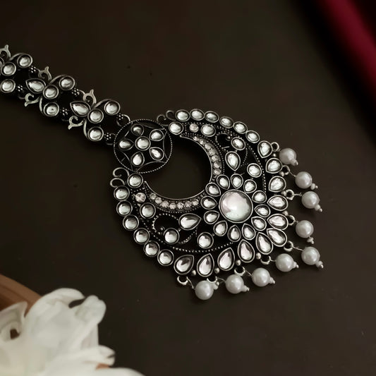 Kumudini Silver Oxidised Seeshphool/Mathapatti