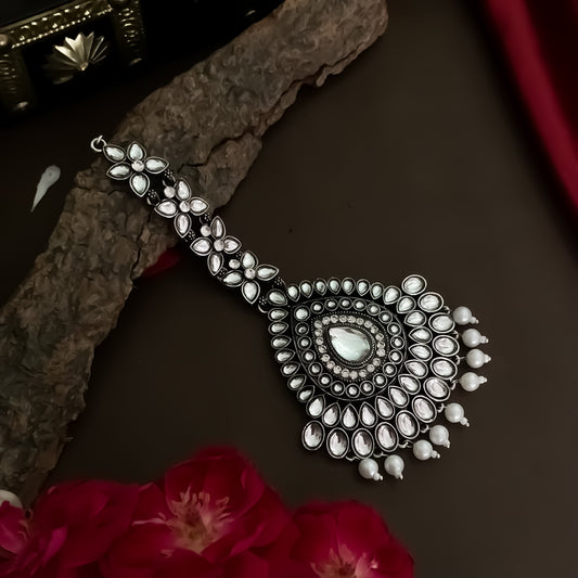 Mohey Silver Kundan Maang Teeka