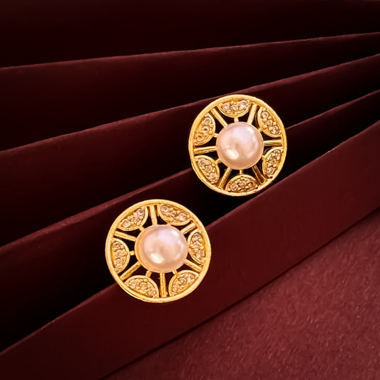 Elsa American Diamond Pearl Stud Earrings - Golden