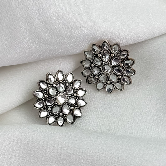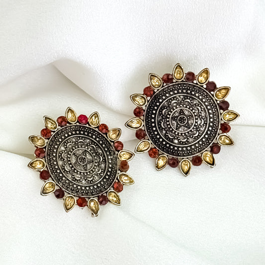 Mihika Oxidised Round Stud Earrings