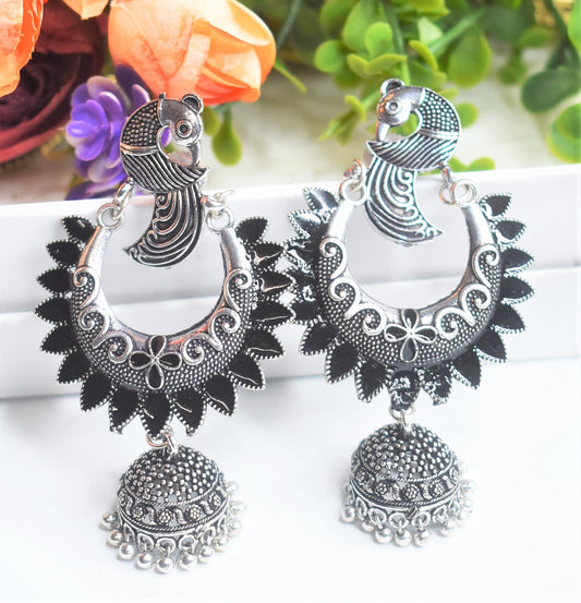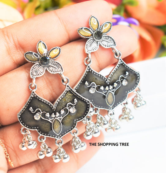 BLACK STONE STUDDED SILVER GS JHUMKA EARRING