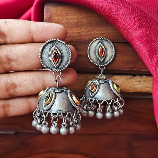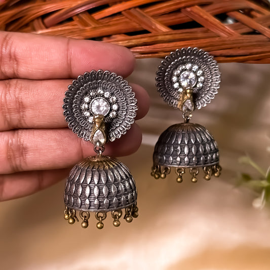 Mayuri 3D Zircon SLA Brass Jhumka Earrings - Crystal White