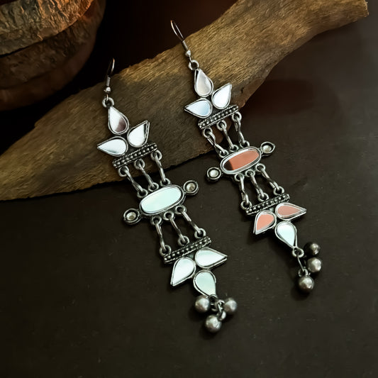 Vasundhara Afghani Vintage Mirror Earrings - White