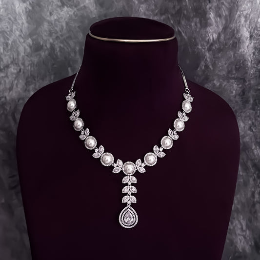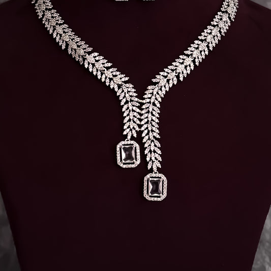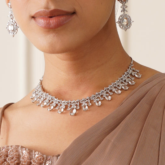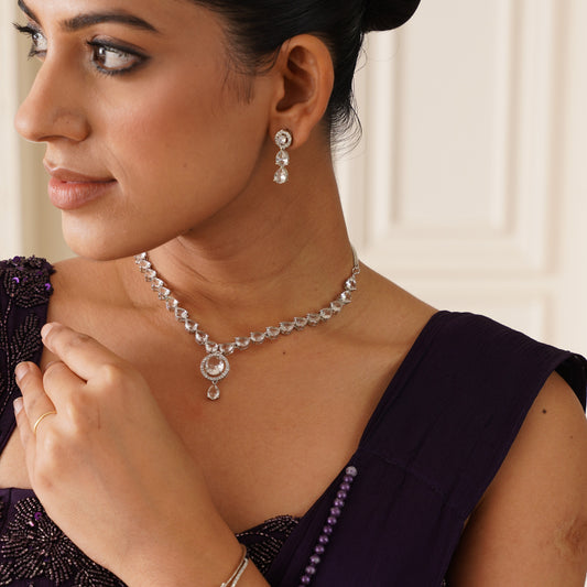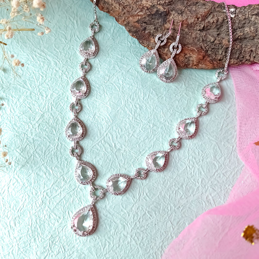 Kristine Premium American Diamond Necklace Set- Crystal White