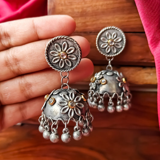 Manmeet Floral Vintage Polish Jhumka Earrings - White
