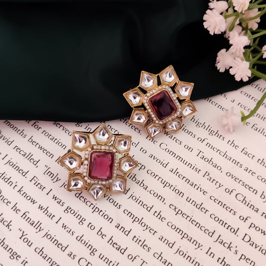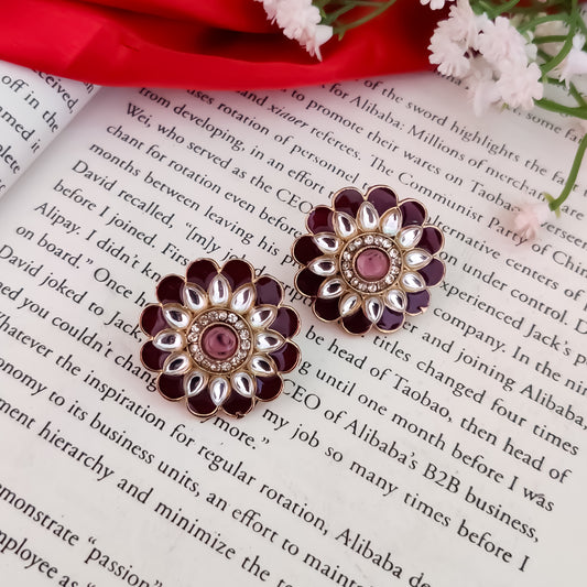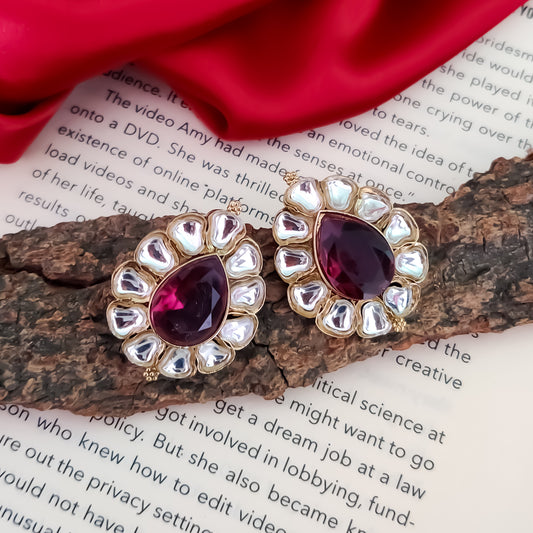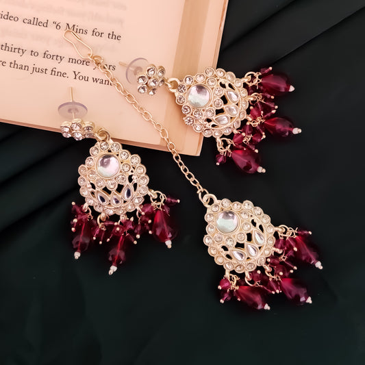 Athiya Kundan Pearl Premium Chandbali Earrings - Wine