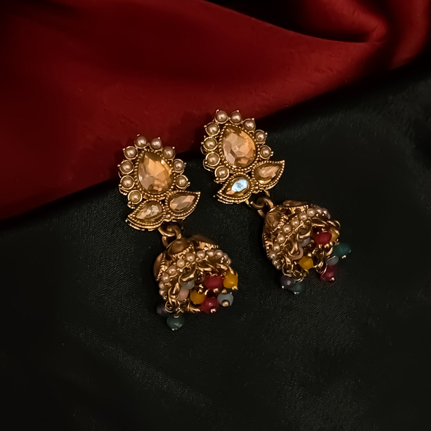 Dhriti Reverse AD Jadau Jhumka with Sahara & Teeka- Multi