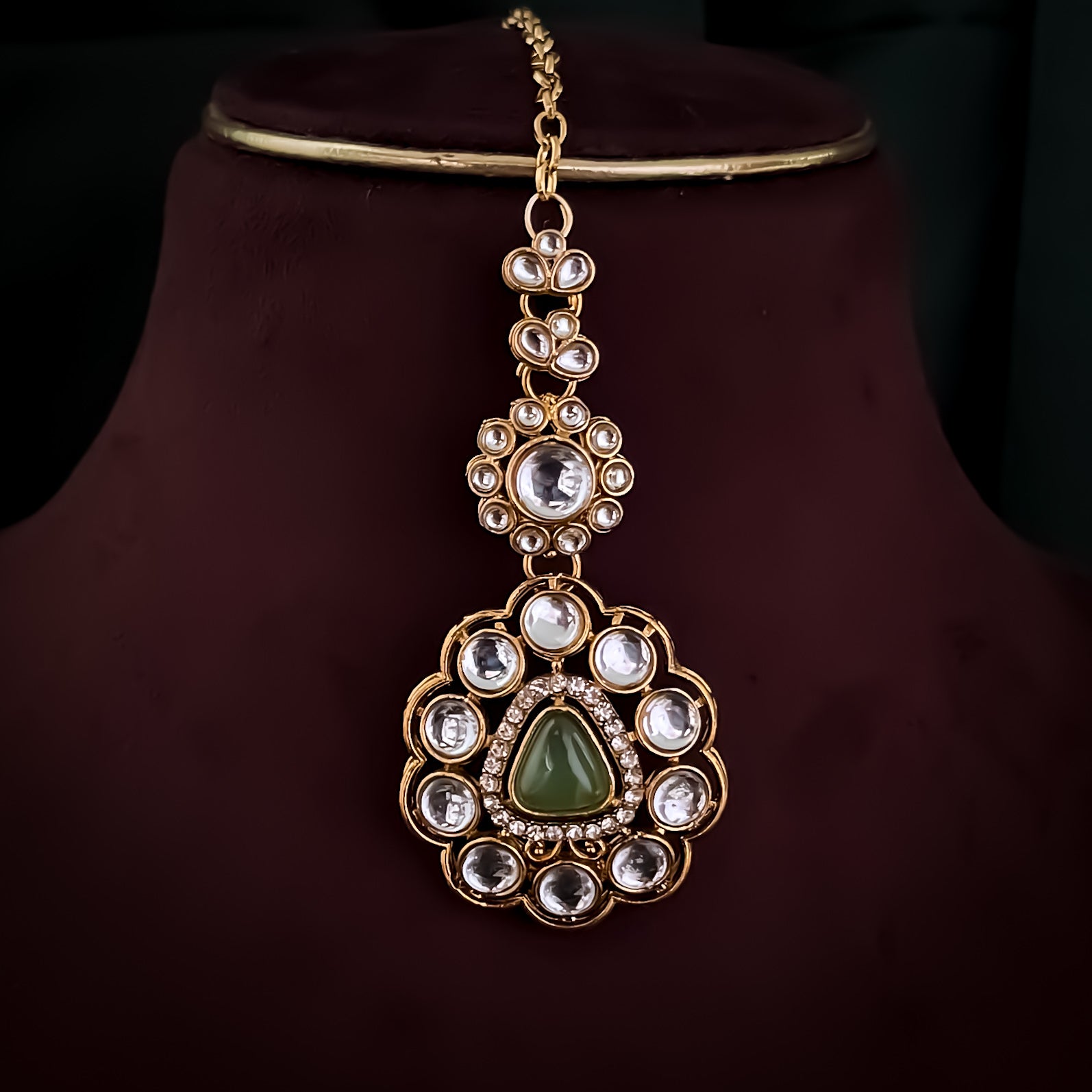 Rani Padmavat Jadau Jhumka Earrings with Sahara & Teeka - Golden