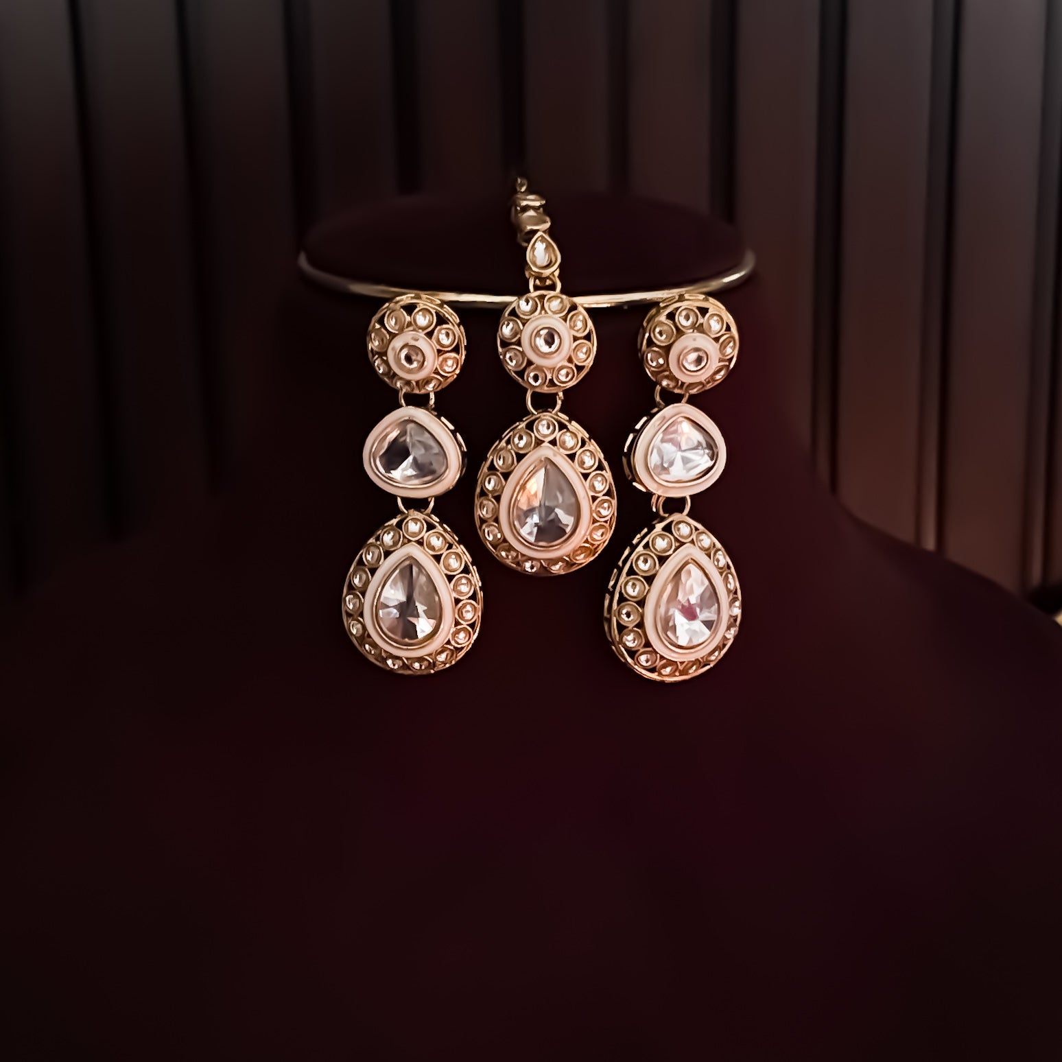 Rani Padmavat Jadau Jhumka Earrings with Sahara & Teeka - Golden