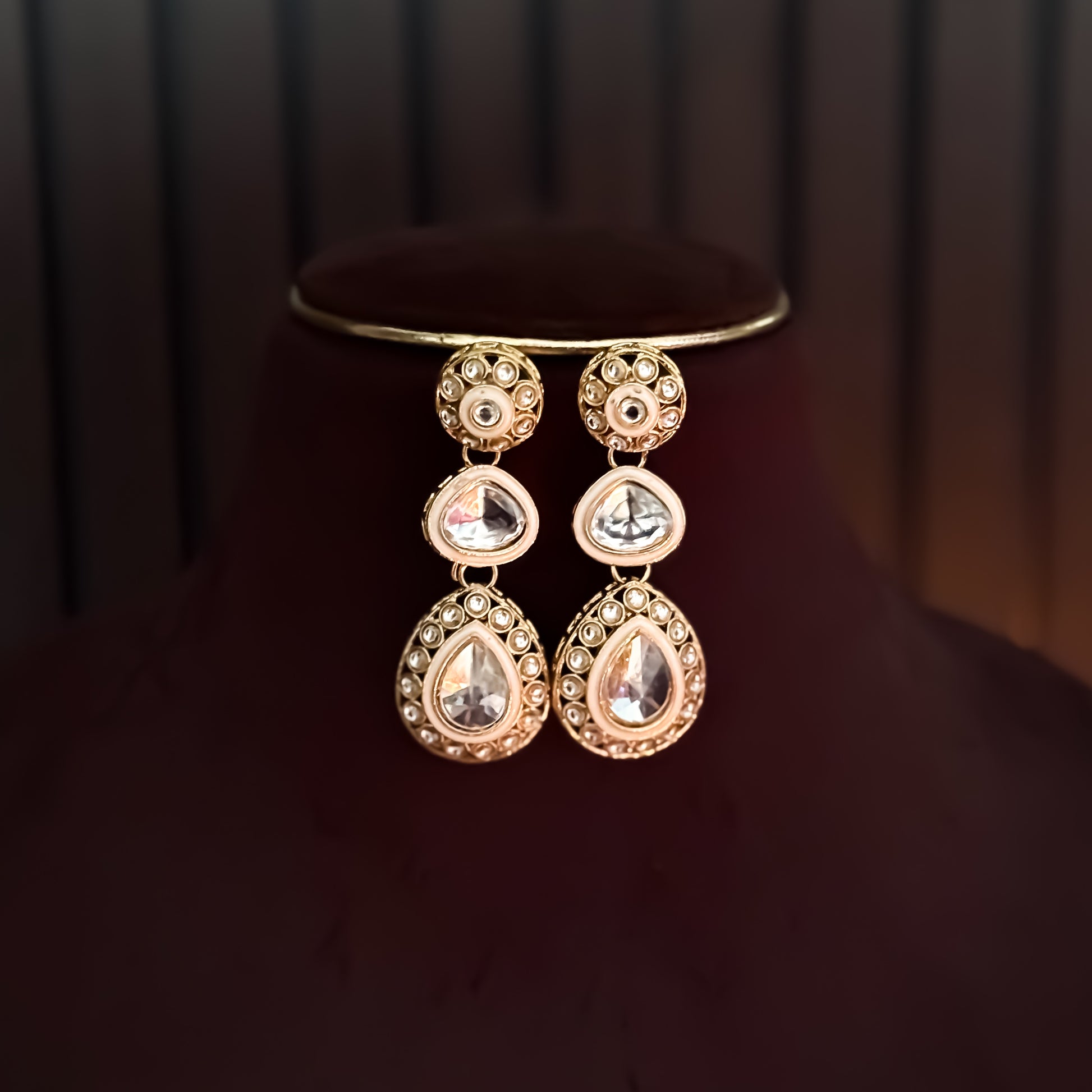 The necklace sits gracefully on the neckline, while the matching earrings complete the look with elegance. Lightweight yet luxurious, this set is a must-have for every jewelry lover who adores classic Indian craftsmanship.