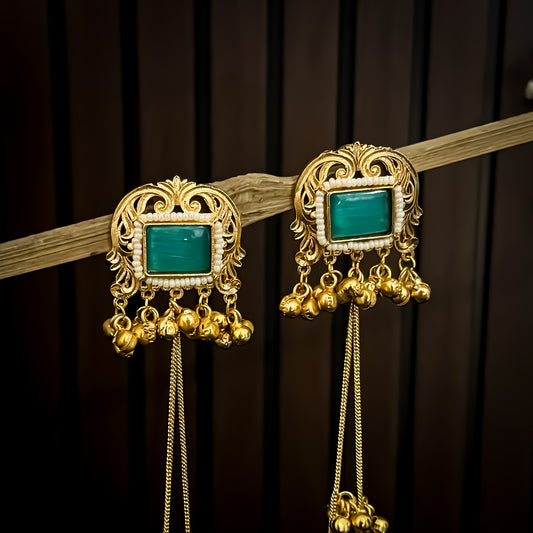 Nishita Premium Kashmiri Brass Ghungroo Dejhoor Earrings - Pastel green
