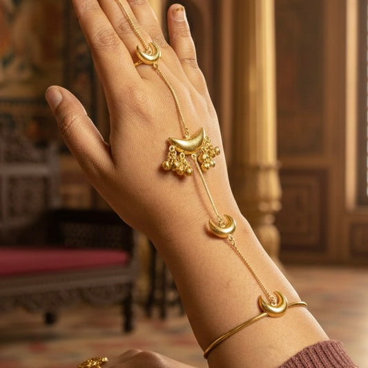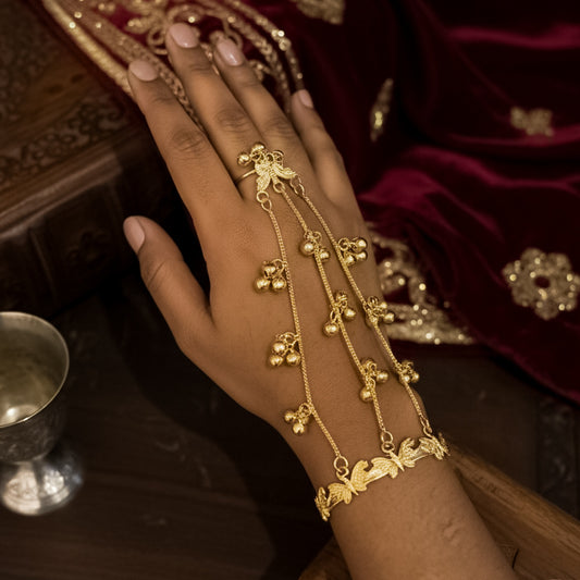 Butterfly Kashmiri Brass Ghungroo Haathphool - Golden
