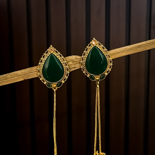 Aarunika Premium Kashmiri Brass Dejhoor Earrings with Sahara/Earchains - Pastel Green