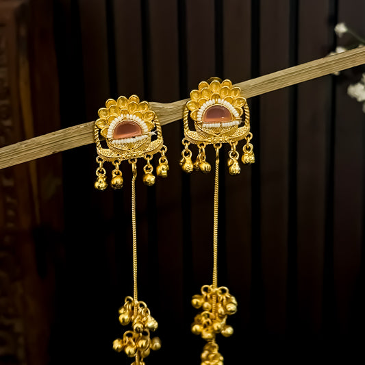 Nishita Premium Kashmiri Brass Ghungroo Dejhoor Earrings - Pastel Pink