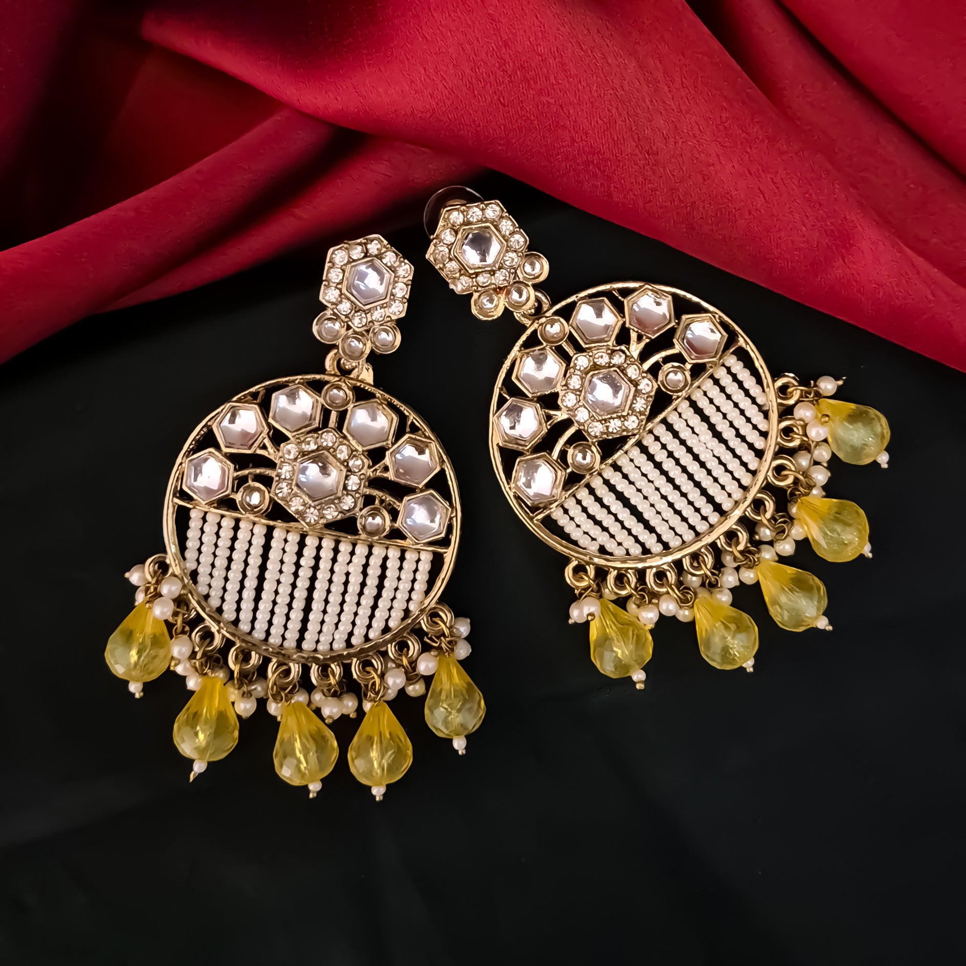 Mandana Kundan Chandbali Earrings - Lemon Yellow